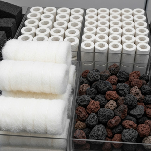 Bùi Nhùi Jmat (Rất khuyến khích): Cực kỳ hiệu quả trong việc giữ cặn bẩn và là giá thể tuyệt vời cho vi sinh vật phát triển ở giai đoạn đầu.