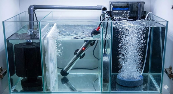 Đây là yếu tố quan trọng nhất nhưng thường bị hiểu lầm là chỉ dành cho cá. Thực tế, hệ vi sinh hiếu khí (loại tốt giúp xử lý nước) tiêu thụ một lượng oxy khổng lồ để hoạt động.
