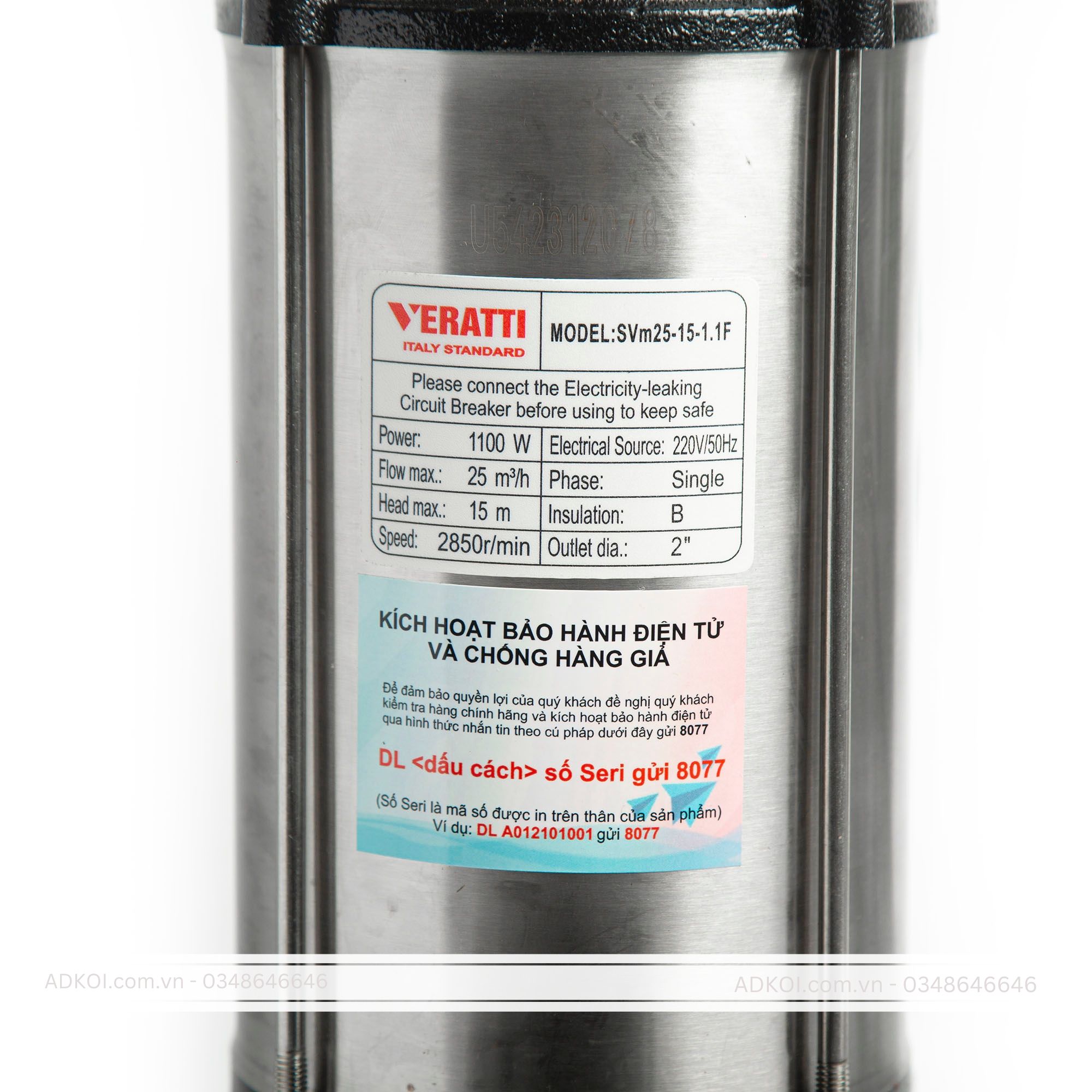 Máy bơm chìm chạy 24/24h, thương hiệu Veratti - Model SVm25-15-1.1F là dòng bơm nước thải làm từ gang, thép không gỉ hoặc các vật liệu chịu ăn mòn khác để đảm bảo độ bền và khả năng chống lại môi trường nước thải, tích hợp phao đóng ngắt tự động (chống cạn);