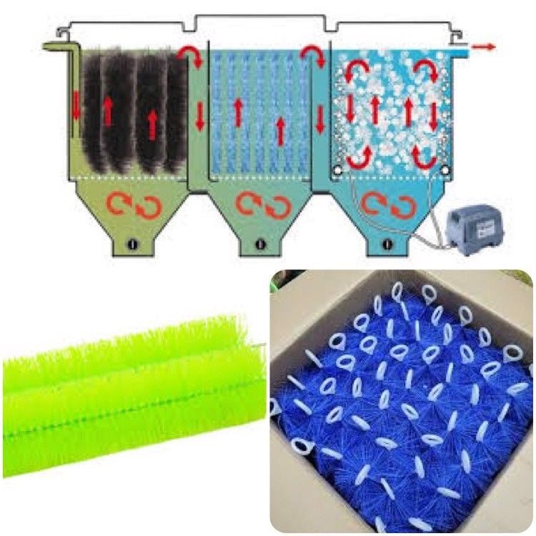 - Ngoài lọc cơ học thì Chổi lọc cũng được ứng dụng như là một dạng lọc sinh học, làm giá thể dính bám cho vi sinh vật trú ẩn.