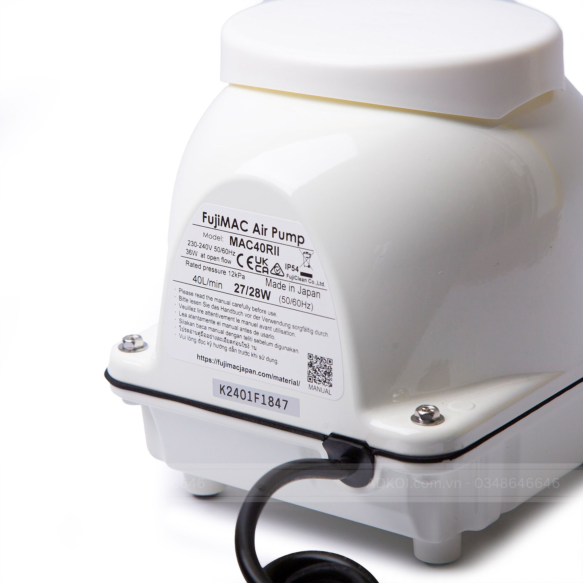 Máy sủi Fujimac/ model MAC 40R II - Thương hiệu số một (1) về máy sủi khí Oxi - Cũng là Máy thổi khí duy nhất Sản xuất đóng gói nguyên chiếc tại Nhật Bản (bao gồm từ khâu thiết kế, phát triển sản phẩm, sản xuất và đóng gói).